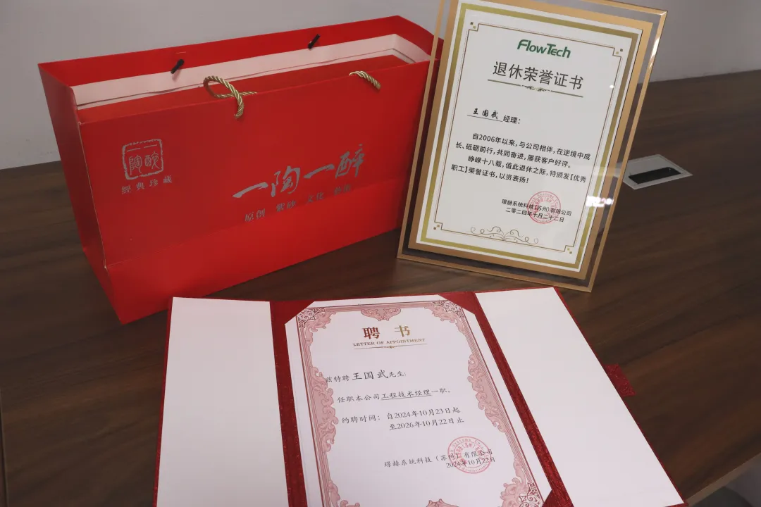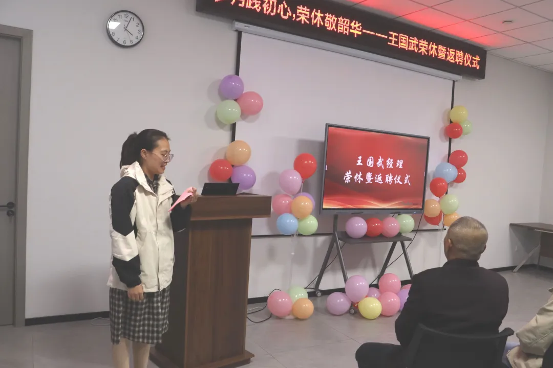 在這個金秋送爽、丹桂飄香的季節里,璟赫大家庭迎來了一場特別的儀式——王國武王經理的榮休暨返聘儀式。10月22日,這一天不僅是王經理職業生涯的一個重要里程碑,也是我們璟赫公司共同銘記的美好日子,因為這是我們自2006年成立以來首次有璟赫家庭的一員做到退休。