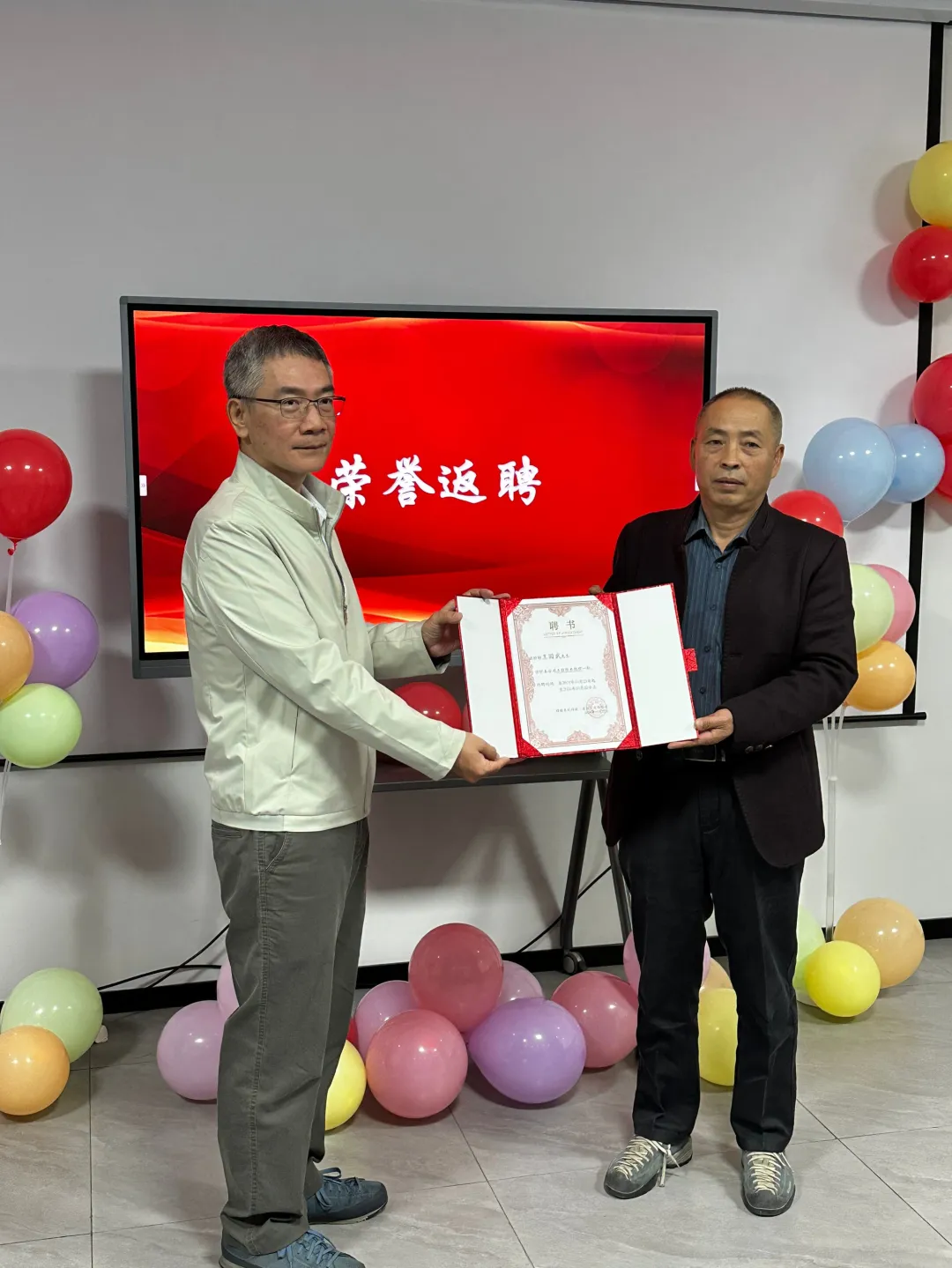 在溫馨的氛圍中,我們共同回顧了王經理的工作片段。那些熟悉的場景、那些動人的瞬間,都讓我們感慨萬千。隨后,游總親自為王經理頒發了榮譽返聘證書,這份證書不僅是對王經理過去工作的肯定,更是對他未來貢獻的期待。